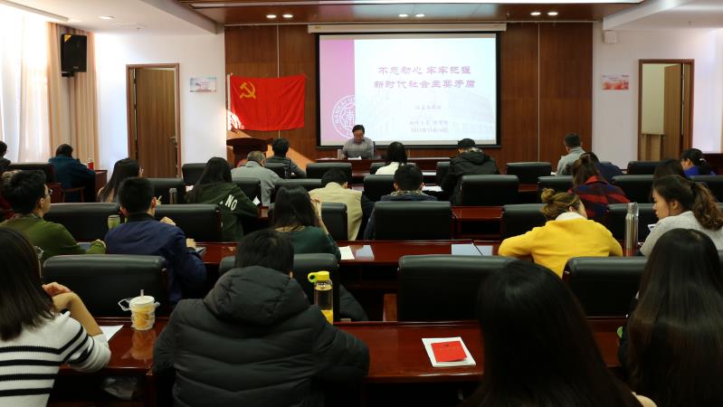 (通讯员田佳佳郭慧)为深入贯彻落实党的十九大精神,在学懂弄通做实上下功夫,切实把公司师生思想和行动统一到习近平新时代中国特色社会主义思想上,公司党委邀请球盟会十九大精神教师宣讲团成员,马克思主义哲学教研室教授阎孟伟进行题为“不忘初心,牢牢把握新时代社会主要矛盾”的主题报告,公司党委书记王君主持报告会,公司领导班子、党政工作者、师生党员及入党积极分子共同聆听。