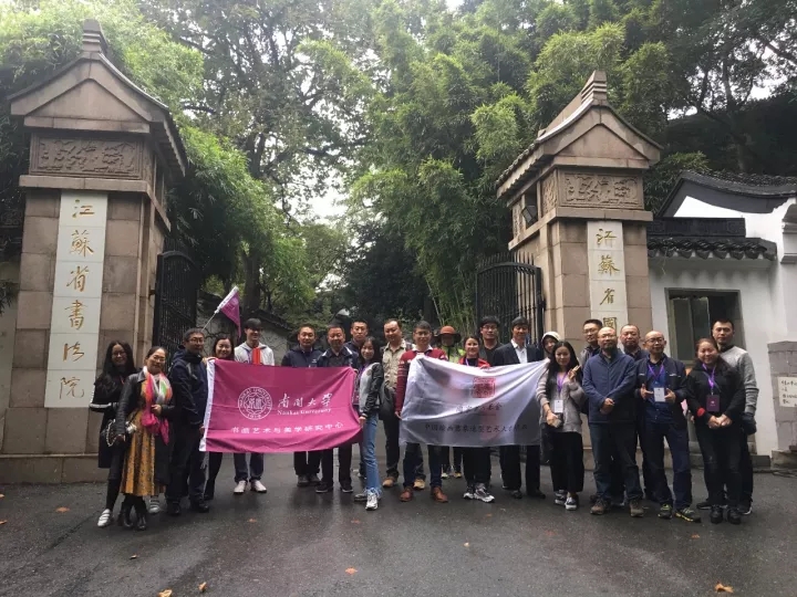 2017年10月16日下午,考察·写生团抵达南京。稍作休整之后,团队前往江苏省国画院参观。江苏省国画院坐落在南京城西清凉山麓石头城旁,有“四明山庄”的雅称,是新中国历史上最著名的画派之一——“新金陵画派”的发源地。学员观摩了“金陵风骨 其命惟新——江苏省国画院60年•典藏精品陈列展”,对于以傅抱石为代表的“新金陵画派”有了更进一步的认识。院内古木藤萝掩楼阁、茂林修竹簇回廊的景致也使学员初步领略的江南园林的典雅景致。