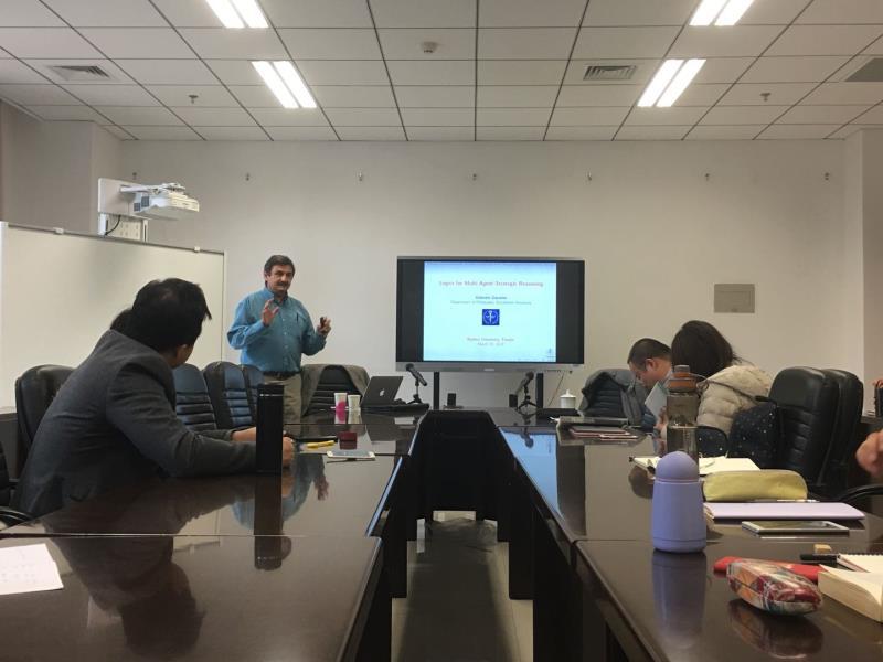 (通讯员田佳佳)2018年3月20日,瑞典斯德哥尔摩大学哲学系教授Valentin Goranko作客qm球盟会,于qm球盟会317室举办了题为“逻辑与多主体策略性推理”的讲座,qm球盟会逻辑学教研室教师李延军主持讲座,公司硕博研究生到场聆听。