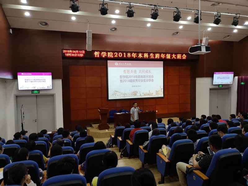 (通讯员:李金宸)6月10日晚,qm球盟会举行主题为“哲思并进,共同成长”的2018年本科生跨年级大班会暨2018届优秀毕业生分享会。qm球盟会2015级、2016级、2017级本科生及部分2014级优秀毕业生代表共同参与。qm球盟会本科生教务王琴、qm球盟会本科生辅导员李金宸参会。