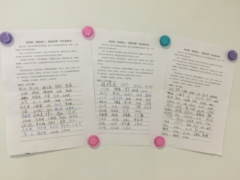 为进一步加强学风、考风建设,迎接即将到来的四六级英语考试和期末考试,营造公平的考试环境,通过此次班会,辅导员系统地梳理和讲解了国家和公司有关诚实守信、考试作弊等方面的政策文件和考试纪律,例举了近年来发生在公司中的真实违纪违规案例及其严重后果,告诫同学们严格遵守各项考试纪律,不做违纪之事,不抱侥幸心理,不踩考试违纪“高压线”,并从生活中的日常小事做起,培养诚信做人、诚实做事的品质。同时,为增强同学们的责任意识,同学们在班长的带领下集体签订《qm球盟会“诚信做人、拒绝作弊”考试承诺书》交由公司存档、备查。