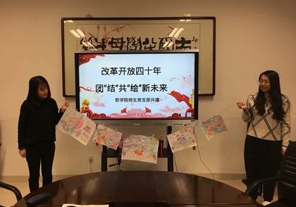 此外,本次活动还开展了“绘刻忆改革,结绳祝未来”特色实践环节,员工党员通过绘画和编织中国结,将历史悠久的中国传统文化与改革开放40年来取得的伟大成就相结合,通过绘刻结绳的方式记忆改革开放,共筑美好未来,以此庆祝改革开放40周年。2017级硕士生党员郭慧同学表示:“灵活丰富的活动形式增进了党日活动趣味性,理论学习的有效性也有所增益。与此同时,与教师支部的共建形式为师生交流提供了便利通道。”