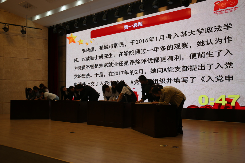 大赛包括党员应知应会一站到底、党务工作实操、谈心谈话情景模拟和支部书记讲党课四个环节,以赛促学、以赛促建,考察党支部委员在支部建设工作中的多项能力,展示各样板党支部的典型示范、引领带动作用。经过激烈角逐,外国语公司硕士生第一党支部摘得大赛桂冠,斩获优胜奖奖杯。