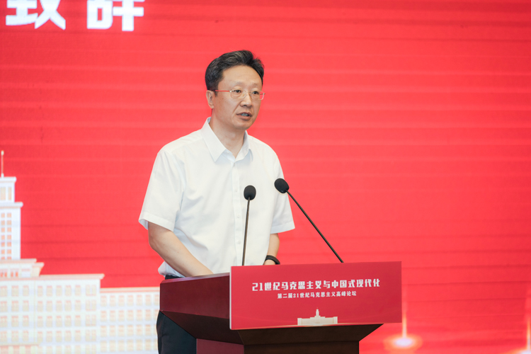 杨庆山在主持论坛开幕式时强调,中国式现代化的理论体系是习近平新时代中国特色社会主义思想的重要组成部分,是当代中国马克思主义、21世纪马克思主义的最新理论成果,是科学社会主义的最新重大成果,为以中国式现代化全面推进中华民族伟大复兴提供了根本遵循。广大哲学社会科学工作者要勇担时代赋予的光荣使命和责任担当,正确理解、精准阐释和深刻把握中国式现代化的理论内涵和本质要求,进而有力推动中国式现代化自主知识体系的建构与传播,不断开辟21世纪马克思主义与中国式现代化的研究阐释新局面,为构建中国自主知识体系做出贡献。