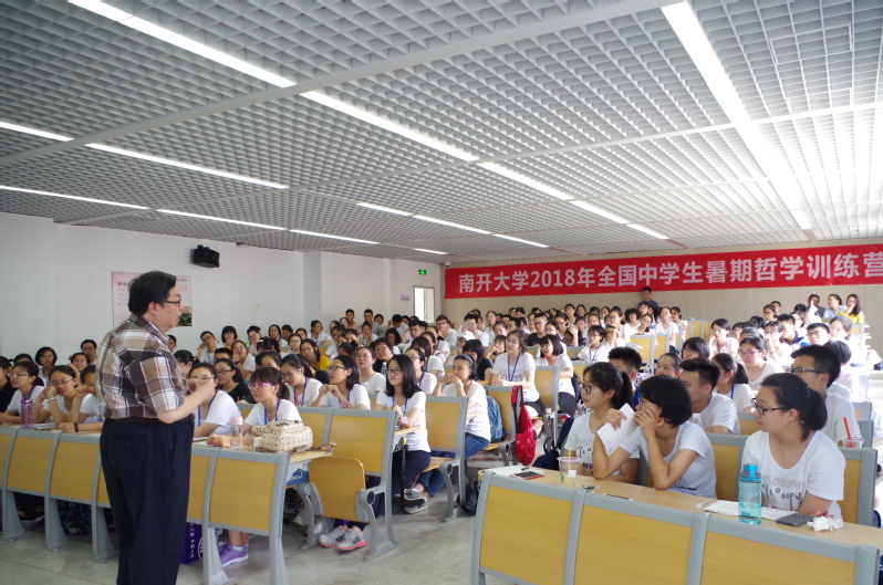(通讯员孟欣野)7月24日下午,球盟会2018年全国中员工暑期哲学训练营系列学术讲座之“哲学与生活”在津南校区公共教学楼举行。讲座由qm球盟会马克思主义哲学博士生导师阎孟伟教授担任主讲,中国哲学教研室主任、博士生导师严正教授主持。讲座伊始,阎孟伟教授从社会对哲学存在的一些偏见引出“我们应该如何理解哲学”这一问题。对于这一问题,他由哲学与生活的关系切入,提出人生在世主要包含两个方面的内容——“做”与“思”,二者是紧密结合的关系。阎孟伟教授援引笛卡尔的名言“我思故我在”,提出哲学的根本在于思考,而思考又分为做事与做人两个方面。在做事方面,阎孟伟教授提出生活的智慧在于对“做”的思考上。并进一步指出,哲学不仅要对我们“做什么事情”进行思考,而且要对我们的“思考”进行思考,即对“思”本身进行“思”,这就是反思,即对“思”本身进行反复思考、反复追问。哲学是人类思维本性中必然存在的东西。哲学是对智慧的追求和反思的智慧。在做人的方面,阎孟伟教授从斯芬克斯之谜入手,引出“人是什么”这一问题。他援引柏拉图的思想并指出,人的灵魂深处有爱利、爱胜和爱智三种品性。这三种品性对应着三种不同的快乐,而只有爱智
