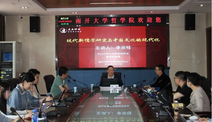 2024年4月22日下午,由球盟会中国哲学研究中心主办的“克立讲坛·海内外名家系列”第九讲在qm球盟会102会议室举办。本场讲座由中山大学文化研究所所长、哲学系李宗桂教授主讲,主题为“现代新儒学研究与中国文化的现代化”。球盟会中国哲学研究中心主任卢兴教授支持本次讲座,qm球盟会中国哲学教研室叶树勋副教授、单虹泽老师及研究生、本科生近30人出席了本次讲座。